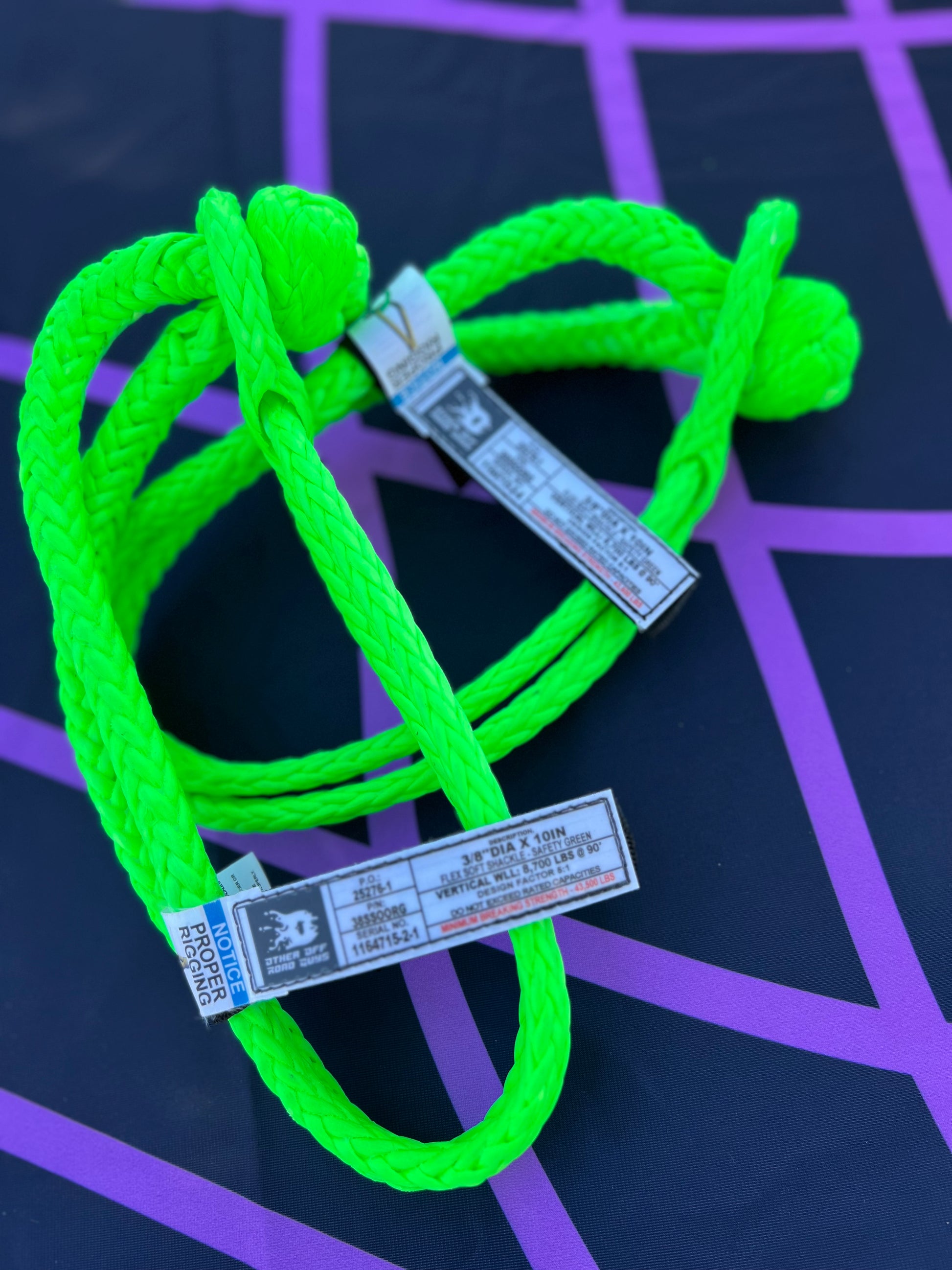 - (2) 3/8 x 10” Soft Shackles (Safety Green, Coated)