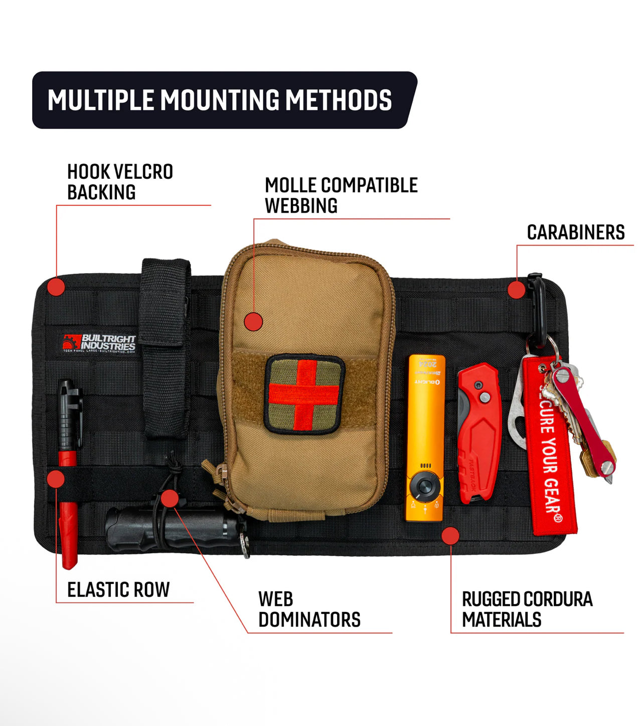 When your truck is your office, you need things to be organized. BuiltRight Tech Panels provide mounting locations for all kinds of pouches, clips, straps and gear and attach securely to any carpet surface that velcro will stick to. Spend less time thinking “where’d I put that?” and more time thinking about how you’re going to get the job done.